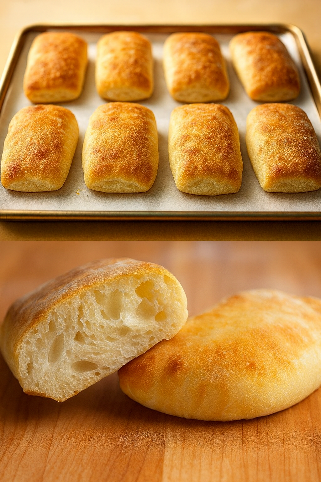 Cool completely on a rack before slicing — ciabatta’s open crumb develops as it cools.